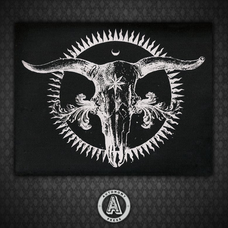 Radiant Cow Skull - Black Canvas Patch $18.00